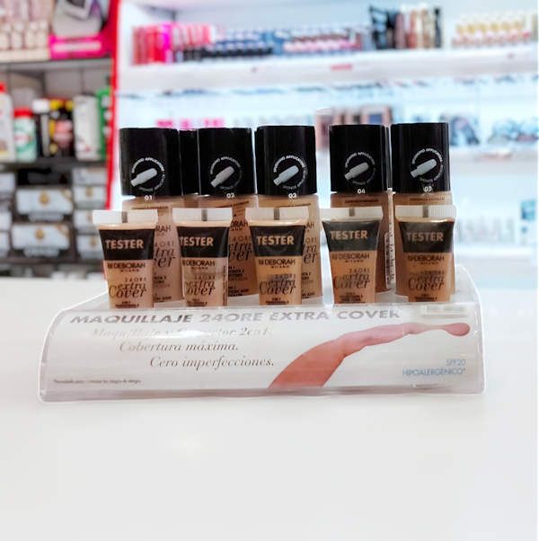 Deborah Milano 24 Ore Extra Cover.  Base de maquillaje de alta cobertura en formato fluido que incluye pincel. Efecto corrector y para todo tipo de pieles.