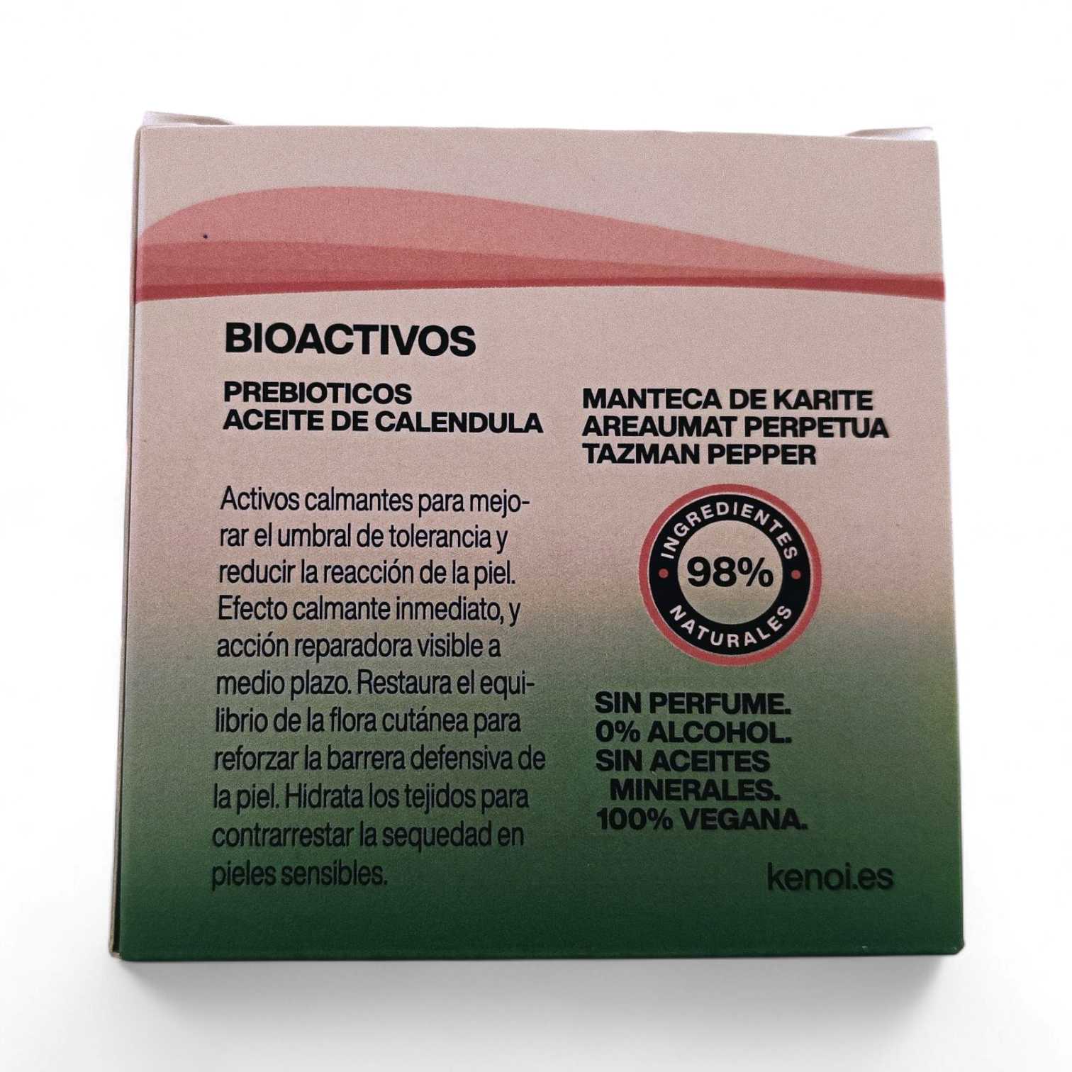 Kenoi Sensitive Calm 24H es una crema facial especialmente formulada para pieles sensibles y reactivas. Su fórmula ligera y no grasa se absorbe rápidamente, proporcionando una sensación de frescor y alivio inmediato.