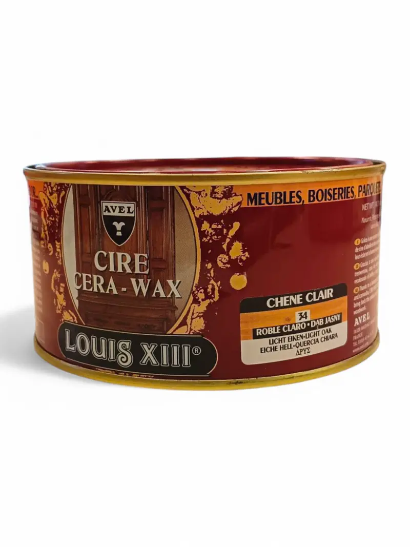 La auténtica cera amarilla en pasta Louis XIII – también conocida como Roble Claro 34 – es el producto más usado para el tratamiento y restauración de maderas claras: roble, haya, fresno, pino, etc.